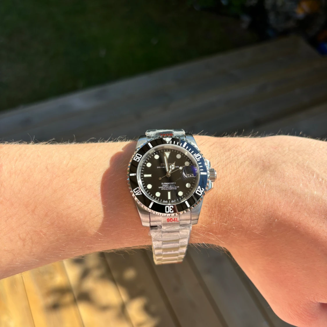 Tja! Har fått in en till Seiko Black Submariner Mod. Helt ny och mycket fin. Tung och gedigen. Om klockan: 904L Stainless Steel. NH35 Automatisk Seiko rörelse. C3 Lume. Sitter på ett oyster armband. Ingår verktyg till att byta länkar!