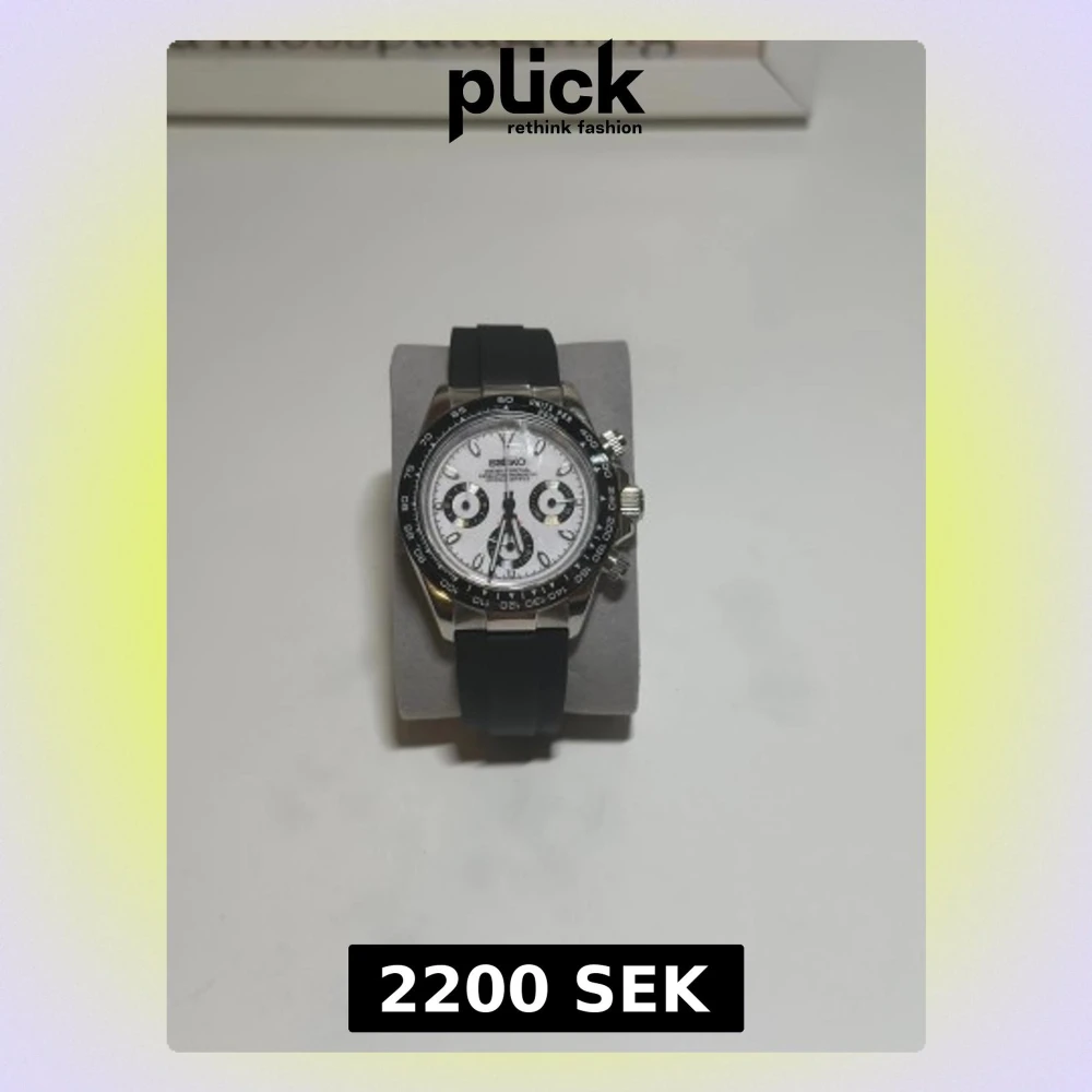 Seiko kronograf "Panda" stil mod Säljer en otroligt stilig och passande Seiko Panda mod. Glaset och baksidan har fortfarande skydd plast. -Klockan har safirglas -Armbandet är av gummi, längden kan justeras -Klockan har tre subdials - Boettens diameter 40mml Vid frågor hör av dig!