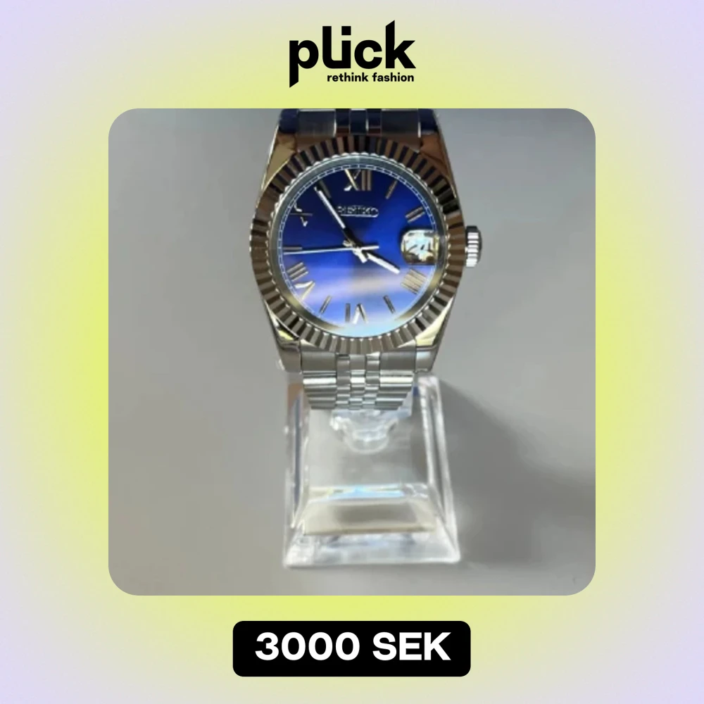 Hej! Nu säljer jag denna helt oanvända klockan som är modifierad. Klockan har måttet 39 mm och har ett automatiskt japanskt Seiko urverk. Jag är öppen för bud!