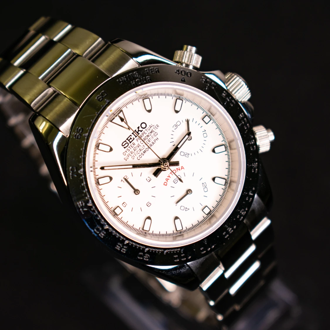 Snygg och stilren Seiko mod med silverfärgad boett och armband. Rörelsen är VK63 Mechaquartz (Japan). Besök gärna oss i Instagram: KeeWeemods