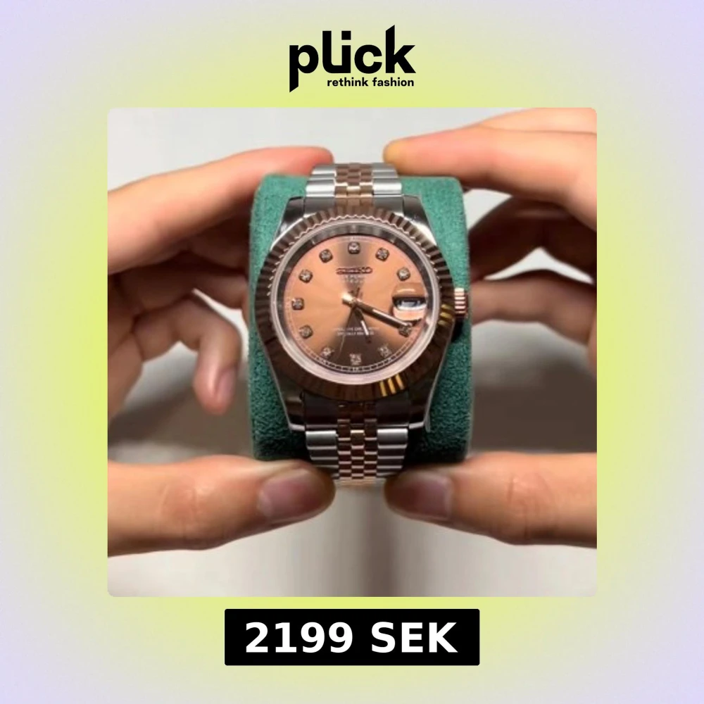 Snygg Seiko klocka med tvåfärgad länk i roséguld och silver. Urtavlan är kopparfärgad med glittriga index och datumfönster. Boetten har räfflad kant och armbandet är i metall. Perfekt accessoar för dig som gillar stilrena detaljer.
