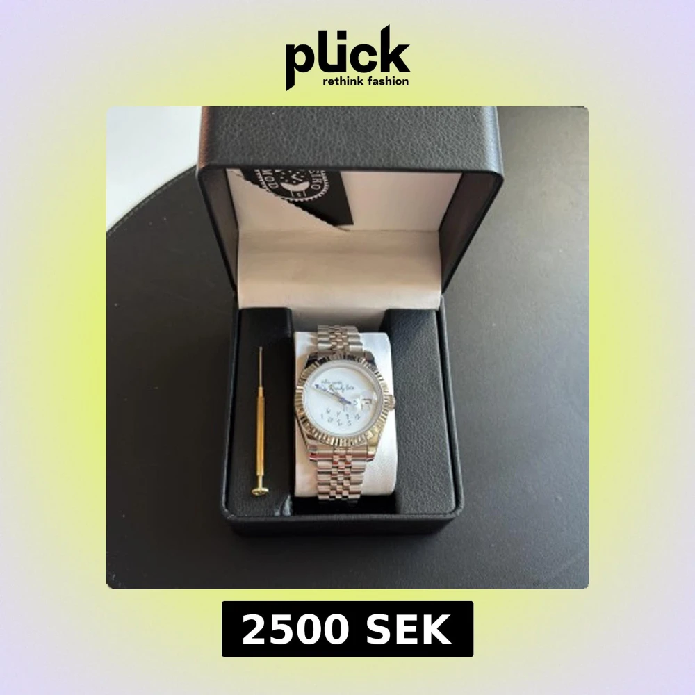 Säljer en stilren automatisk klocka från Seiko Mod med silverfärgad länkarmband och boett. Urtavlan är vit med texten 'Who cares I'm already late' och har en klassisk rund form. Baksidan har ett transparent fönster som visar urverket. Säljer den då jag tyvärr inte kände att det var min stil. Klockan är helt ny och oanvänd.