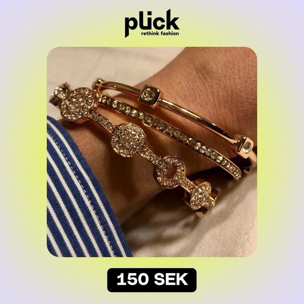 3 helt nya stela armband armringar i rosafärgat guld metall fin kvalitet men skall ej badas och duschas med då de är förgylld stål Jätte glittriga strass stenar som ger mkt bling Nyp 50$ tyvärr för stora därför jag säljer dem
