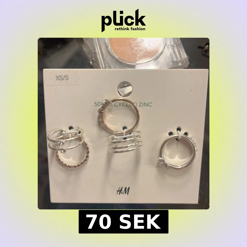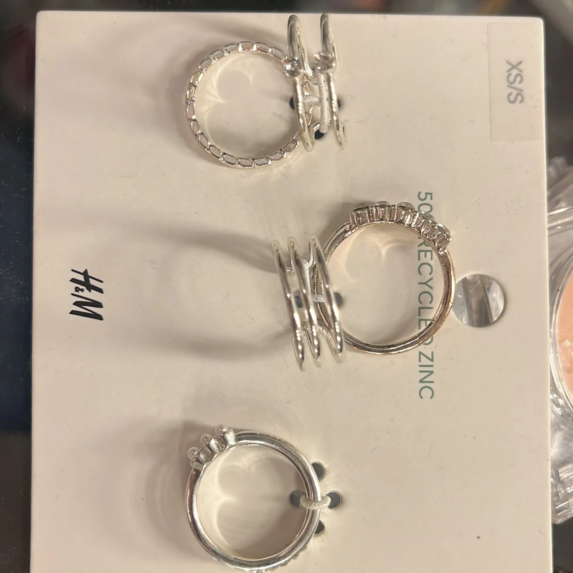 Snyggt set med tre silverfärgade ringar från H&M. Varje ring har unik design, inklusive en med små detaljer och en med flera band. Perfekt för att mixa och matcha för en trendig look.