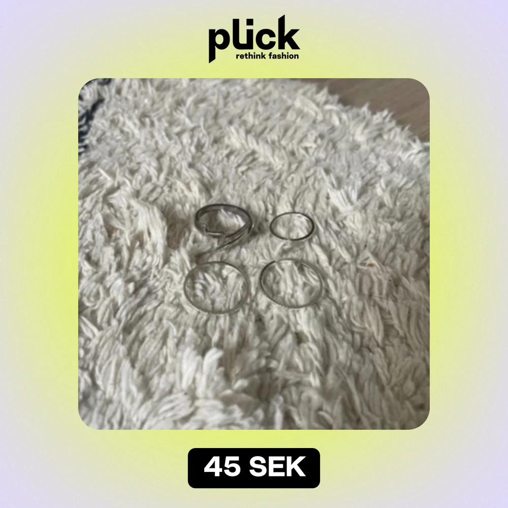 Säljer ett set med fyra stilrena silverringar. Två av ringarna är tunna och enkla, medan en har en unik design med en vriden detalj. Perfekta för att bära tillsammans eller var för sig för en minimalistisk look.