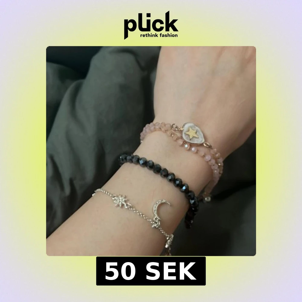 Säljer ett set med tre armband: ett silverfärgat med månar och stjärnor, ett svart glittrigt och ett rosa med en stjärndetalj. Perfekt för att mixa och matcha!Varje sort kostar 50 kr men alla kostar 130