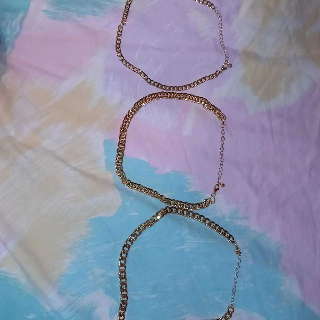 Tre guld kjedor från shein i perfekt shikt. Har aldrig haft på mig dem.😊
