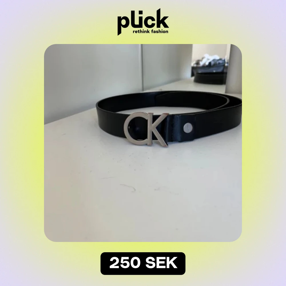 Säljer ett stilrent svart bälte från Calvin Klein. Det har en snygg silverfärgad CK-logga som spänne. Bältet är 90cm långt och är av läder. Nypris 600.