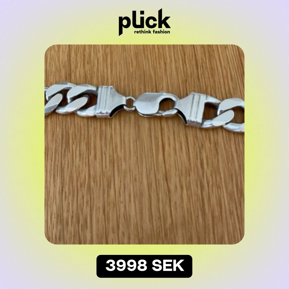 Kedjan väger ungefär 130 g, den är 925 silver och pris kan diskuteras! Den är 50 cm lång.
