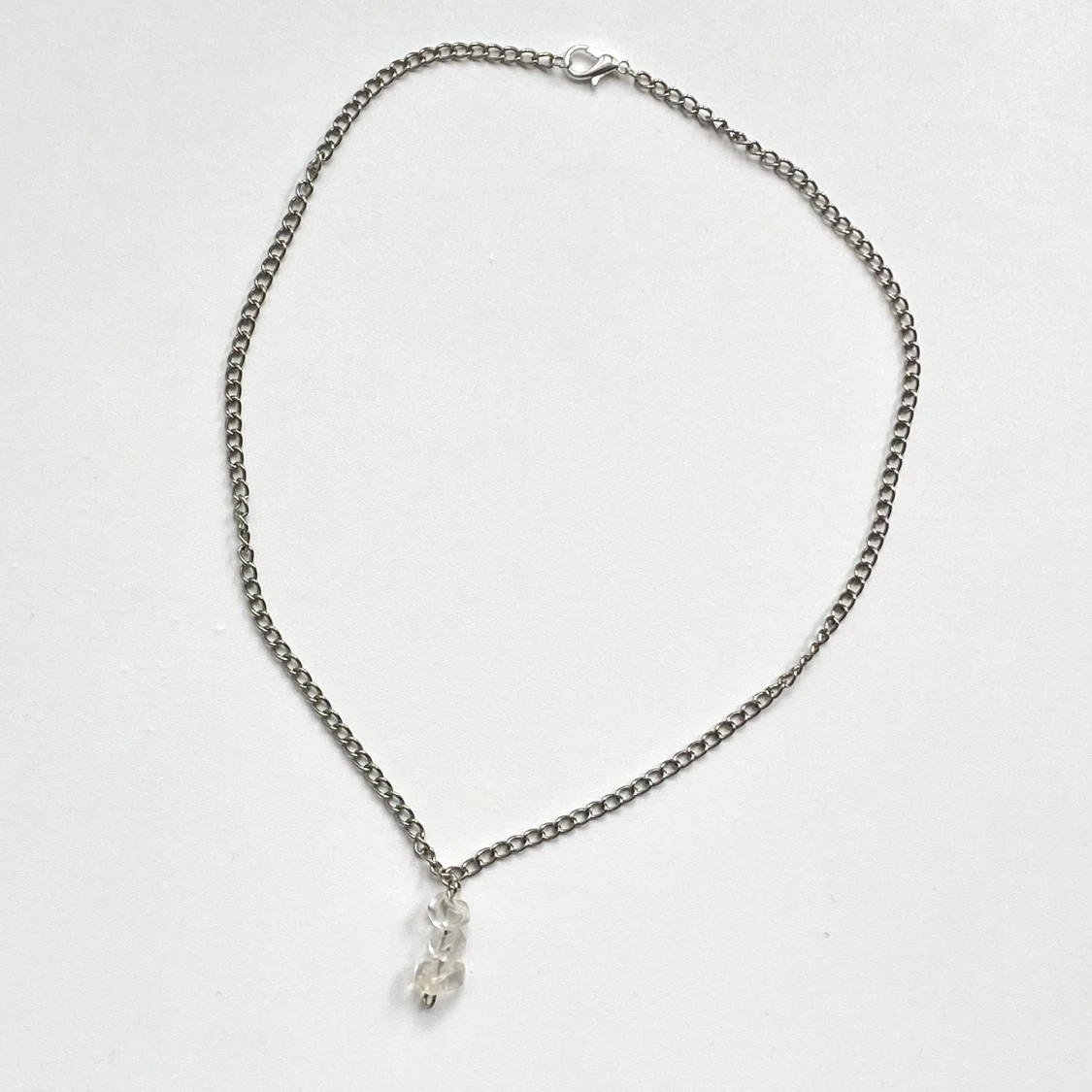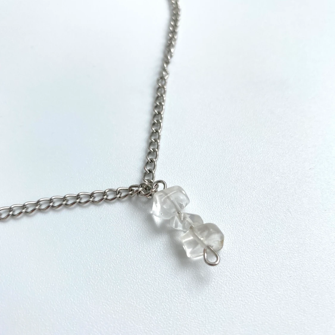 Silvrigt kedjehalsband med kristallchips av halvĂ€delstenen kvartsđ€