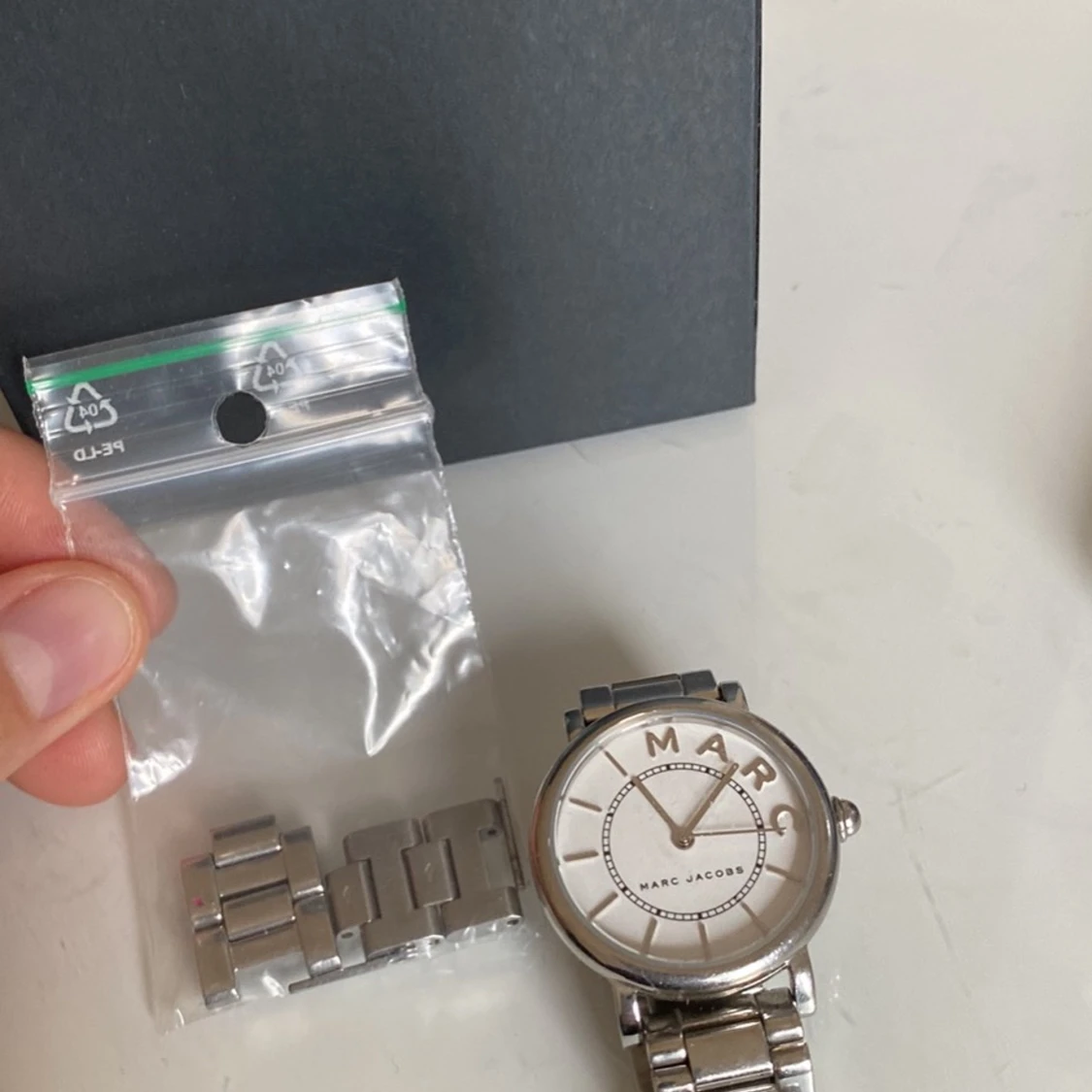 Säljer min Marc Jacobs klocka. Köpte den 2019 men använder ej den längre. Köpte den för 1100 Kr och säljer den för 400. Hör av er om ni är intresserade.