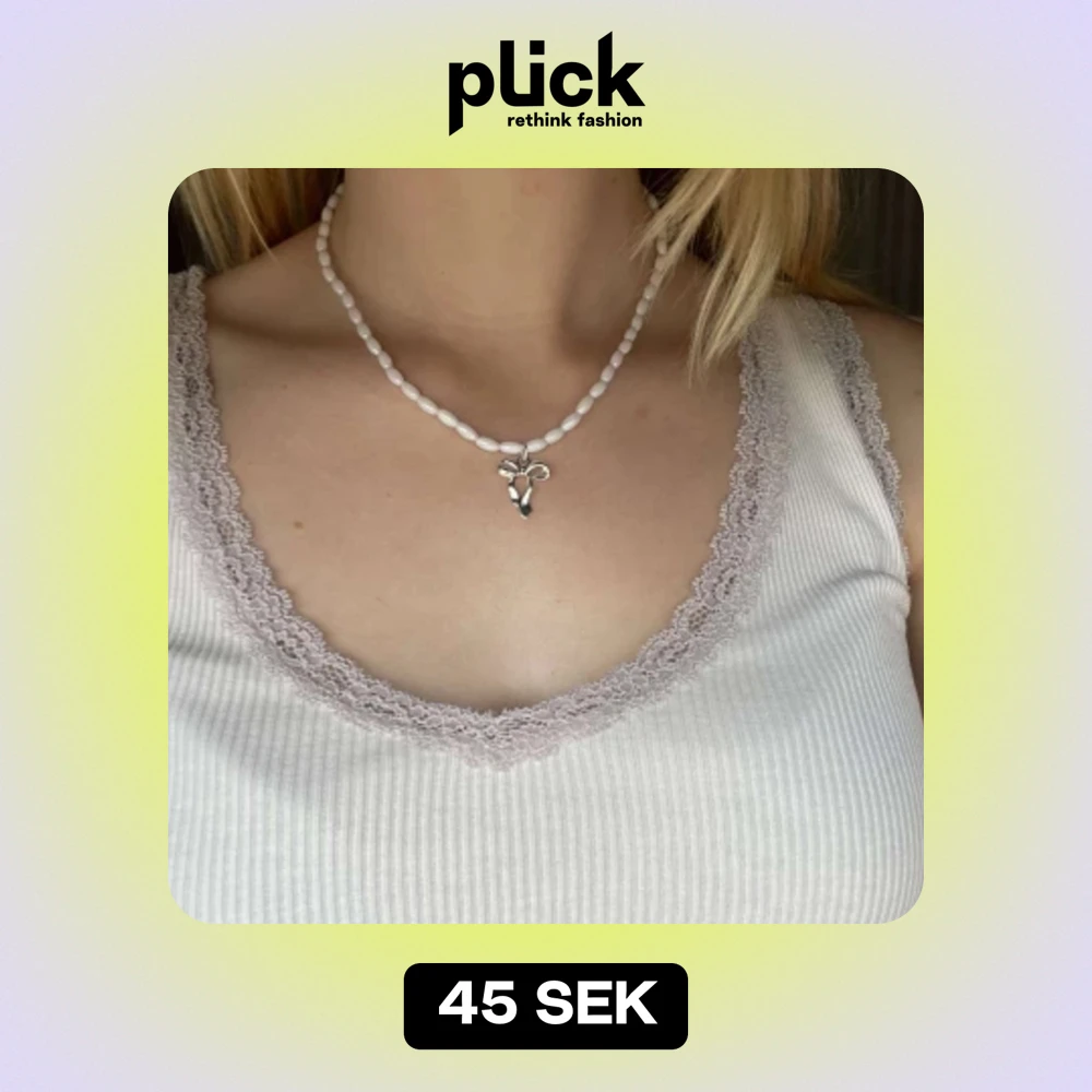 Säljer ett superfint halsband med vita pärlor och en söt silverberlock i form av en rosett. Perfekt för att ge en elegant touch till vilken outfit som helst. Passar både till vardags och fest!