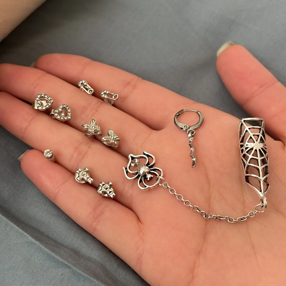 Fina örhängen i silver🕸️ (vanliga örhängen) - 1 för 10 kr (Spindeln med kedjan🕷️) - 45 kr