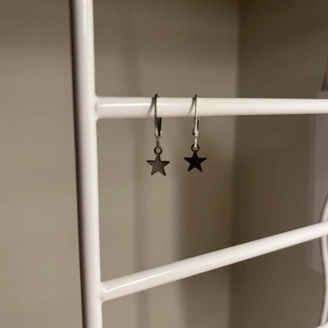 Rostfritt stål.Säljer ett par stilrena silvriga örhängen med små stjärnhängen. Perfekta för dig som gillar minimalistiska smycken med en cool touch. Passar till alla tillfällen och är lätta att matcha med andra accessoarer. Handgjort