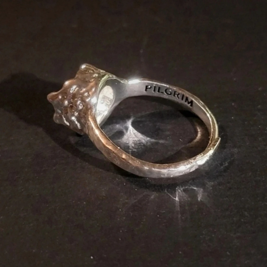 Oanvänd adjustableCool ring silverplated (Rostar inte) från Pilgrim med en organisk, nästan smält design och en glittrande sten i mitten. Ringen har en robust känsla och sticker verkligen ut på fingret. Perfekt för dig som gillar unika accessoarer.