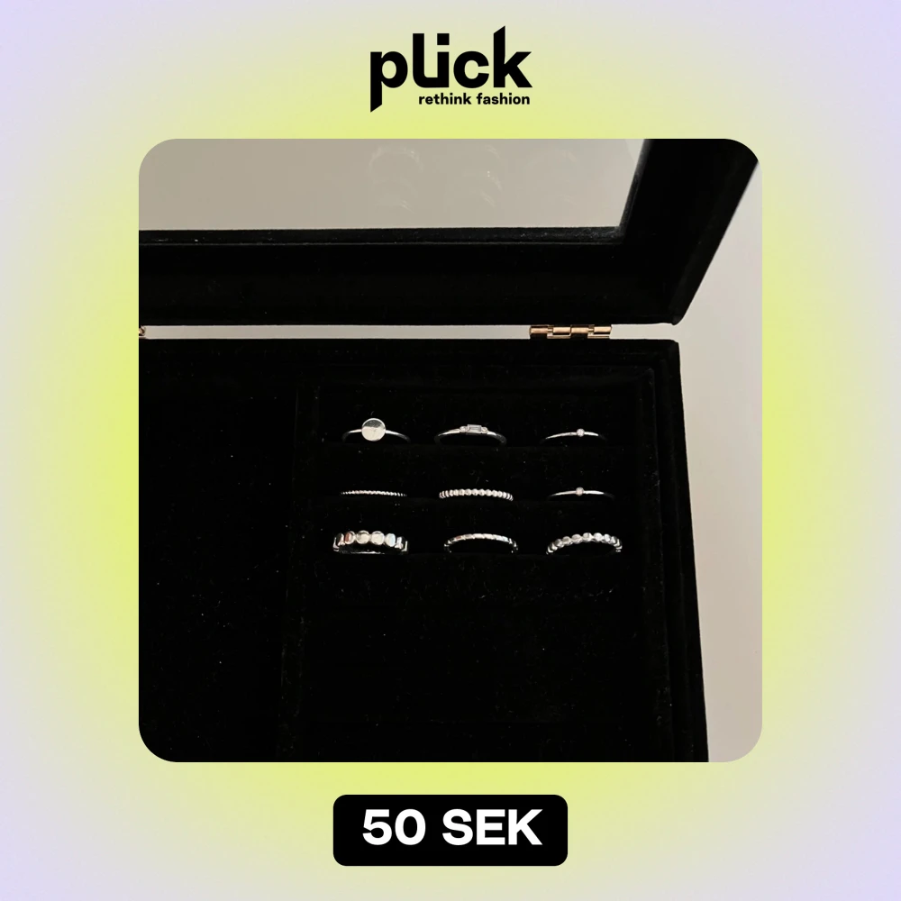 9 stycken silver ringar som aldrig är använda. Storlek L (18,5mm). 11kr för två! Köpte alla för 120kr.