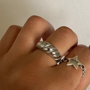 Säljer båda ringar stjärnan kostar 70kr och den bredvid kostar 30kr. Båda är i rostfri stål så de tappar ej färg🥰 ringarna passar alla