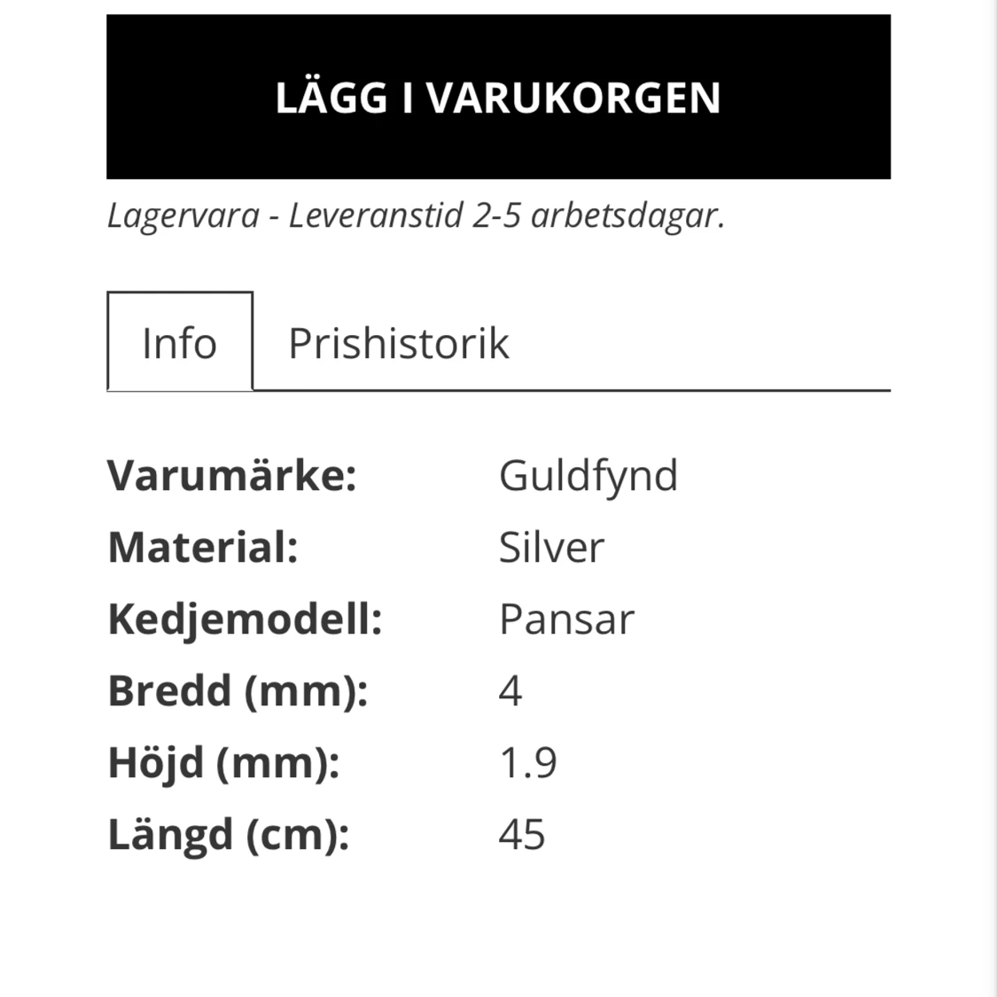 En fin kedja köpt på guldfynd. Nypris 1000. Säljer för den ej kommer till användning längre. Mått ser ni på bild 3. Obs äkta silver. Ask medföljer.