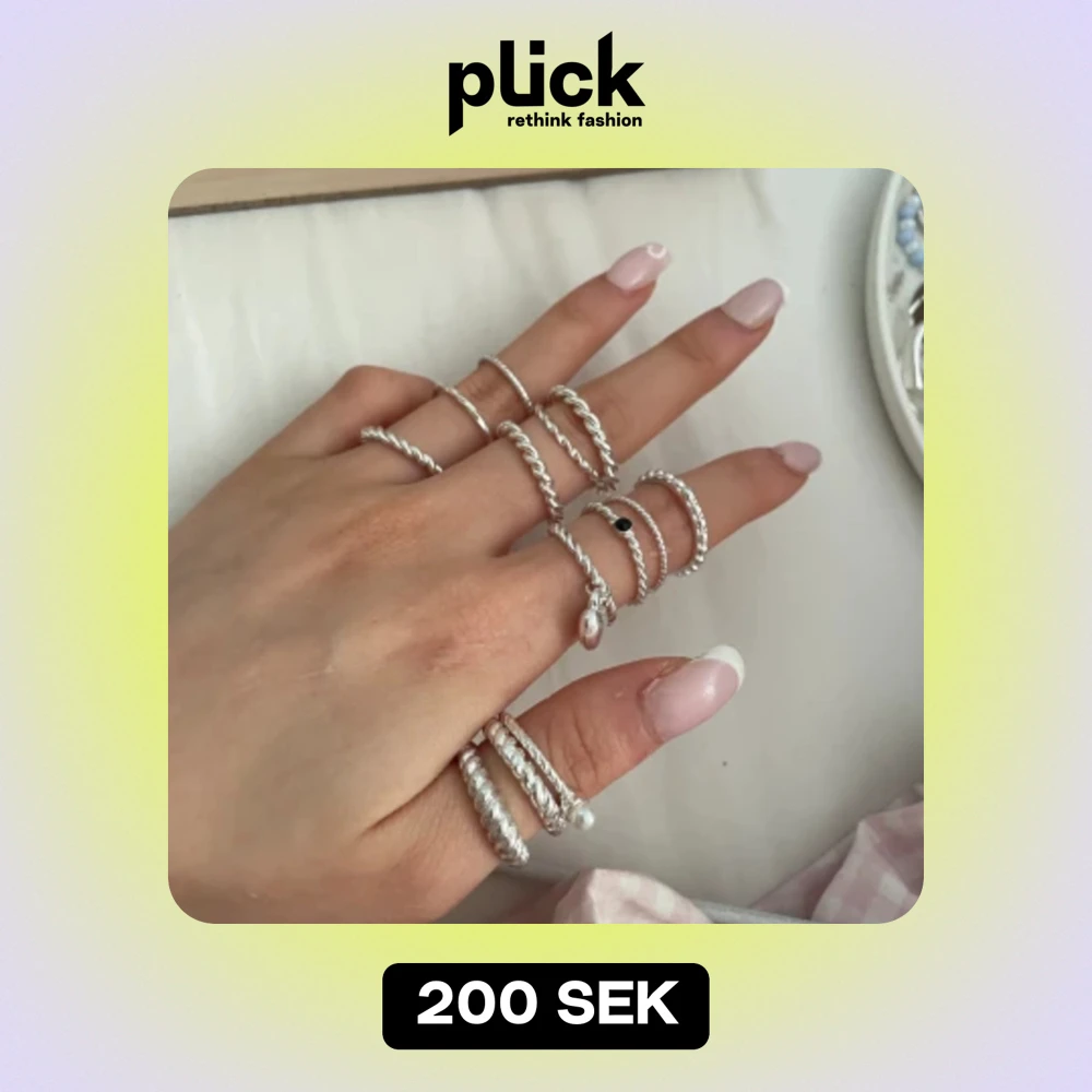 13st ringar i silver, helt oanvända. Jag säljer dessa eftersom jag själv inte använder ringar längre, ringarna färgar inte av sig på fingrarna och det är en blandning av många olika storlekar.