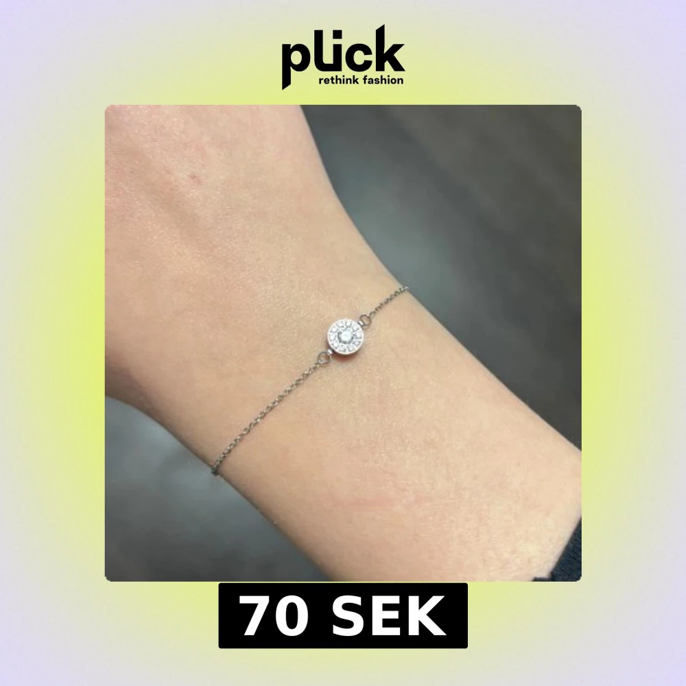 Elegant silverarmband med en rund, glittrig detalj i mitten. Den tunna kedjan ger ett stilrent och sofistikerat intryck, perfekt för att lägga till en touch av elegans till din look.