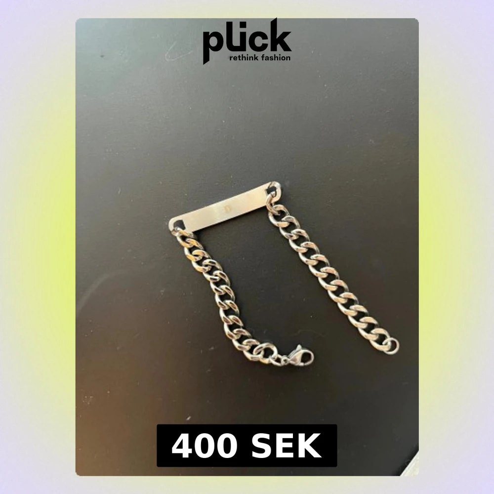 Jag beställde ett armband men råkade få fel gravering så jag säljer ett splitternytt armband perfekt till julklapp. Armbandet kommer i en liten presentbox. Org pris 300+200 gravyr. Kedjan är 17-18 cm
