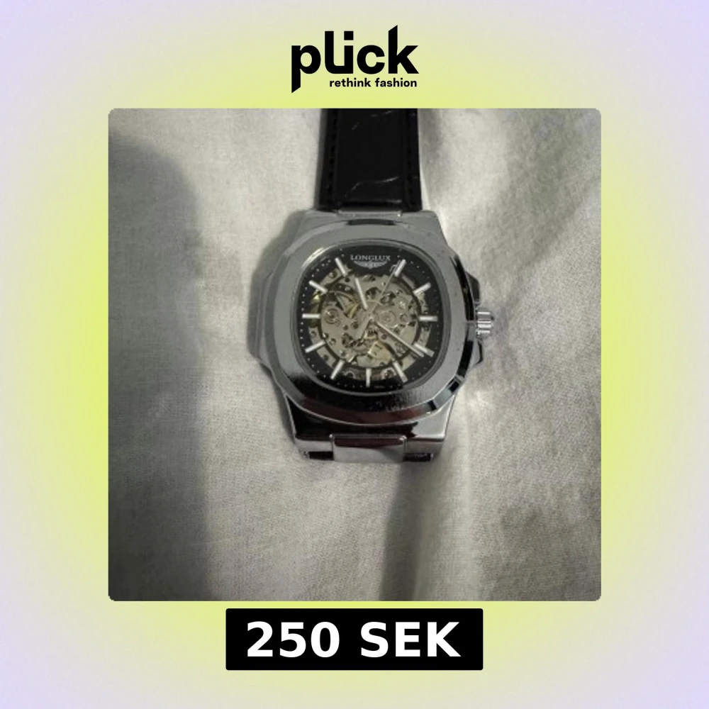 Helt ny och oanvänd. Snygg automatisk klocka från Longlux med silverfärgat boett och svart skinnarmband. Urtavlan är skelettdesignad så du ser urverket. Klockan levereras i originalask. Perfekt för dig som gillar stilrena accessoarer med mekanisk känsla.