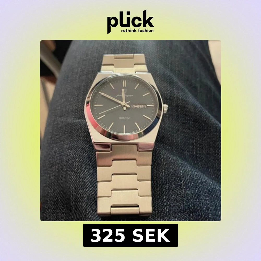 Snygg silverfärgad klocka med kvartsurverk. Den har en stilren mörkblå urtavla med dag- och datumvisning. Armbandet är i rostfritt stål och ger en elegant look. Perfekt för den som gillar en klassisk stil. Länkar för större storlek ingår samt länkbortagare.