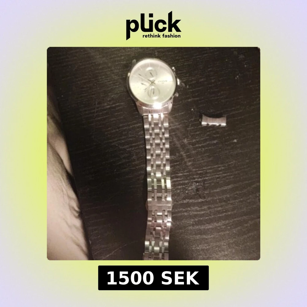 Elegant silverfärgad klocka från Citizen med en stilren urtavla och länkarmband i rostfritt stål. Klockan har en klassisk design med en rund boett och tydliga markeringar. Perfekt för den som söker en tidlös accessoar. Armbandet är av på ena sidan men inget som inte en 50 lapp kan fixa