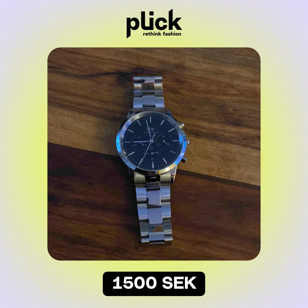 Säljer en stilren och elegant klocka från Daniel Wellington i silverfärg. Den har en svart urtavla med minimalistisk design och ett länkarmband i metall. Perfekt för både vardag och festliga tillfällen. Klockan är i mycket bra skick och redo att bäras av sin nya ägare. Passa på att köpa denna tidlösa accessoar! ⌚️