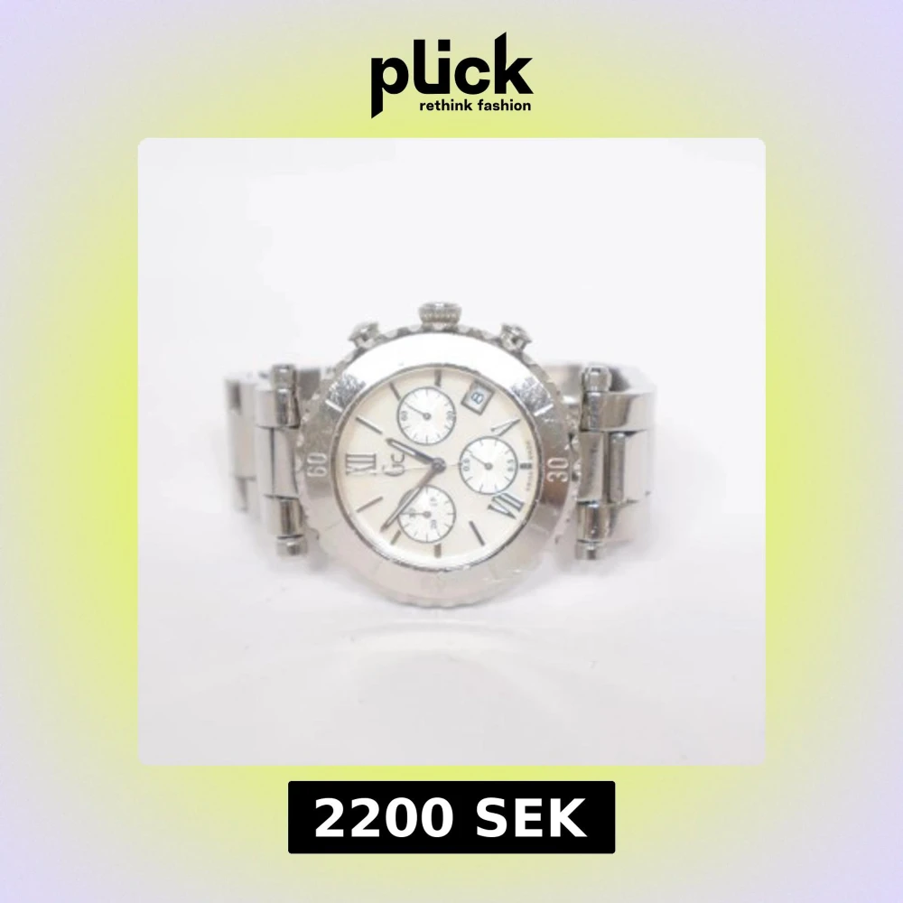 Stilren klocka från Guess Collection (GC43000) i silverfärgat rostfritt stål. Urtavlan har romerska siffror, tre mindre urtavlor och datumvisning. Länken är robust och klockan är vattentät upp till 100 meter. Swiss made och riktigt snygg detalj till din outfit. Den behöver ett nytt batteri men annars är allt bra!