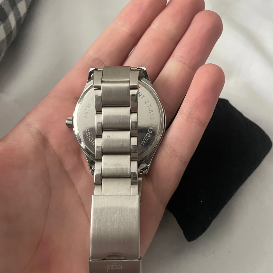 Stilren klocka från Regal med silverfärgad urtavla och armband i metall. Urtavlan är enkel med tydliga markeringar och klockan är vattentålig upp till 30 meter. Perfekt accessoar för dig som gillar klassisk design.