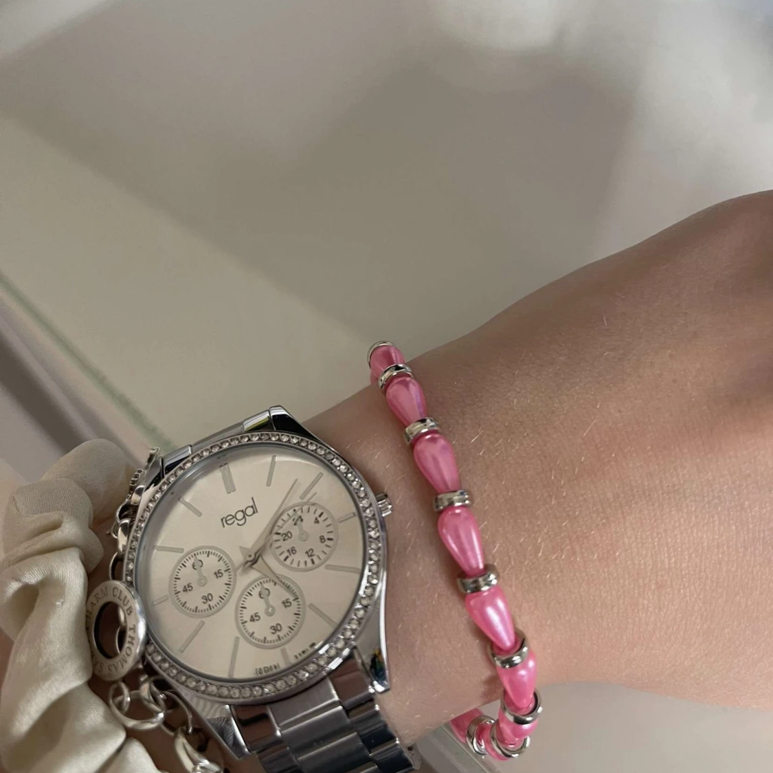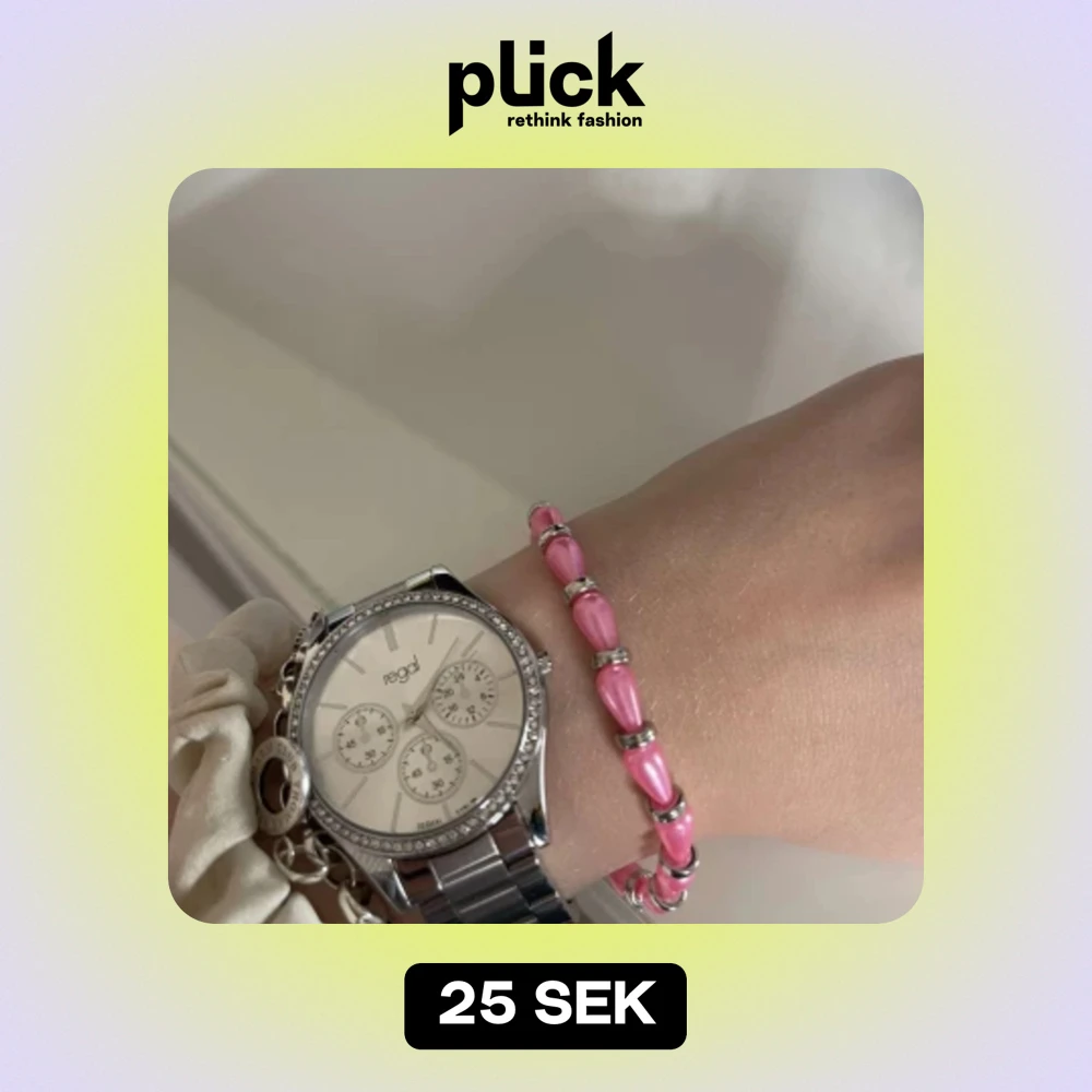 Egengjort pärlarmband med gröna och silvriga pärlor