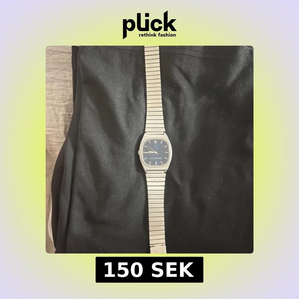 Stilren klocka från Retroduction med silverfärgat armband i metall och mörkblå urtavla. Klockan har en rektangulär boett och tydliga indexmarkeringar. Perfekt accessoar för dig som gillar minimalistisk och klassisk design.