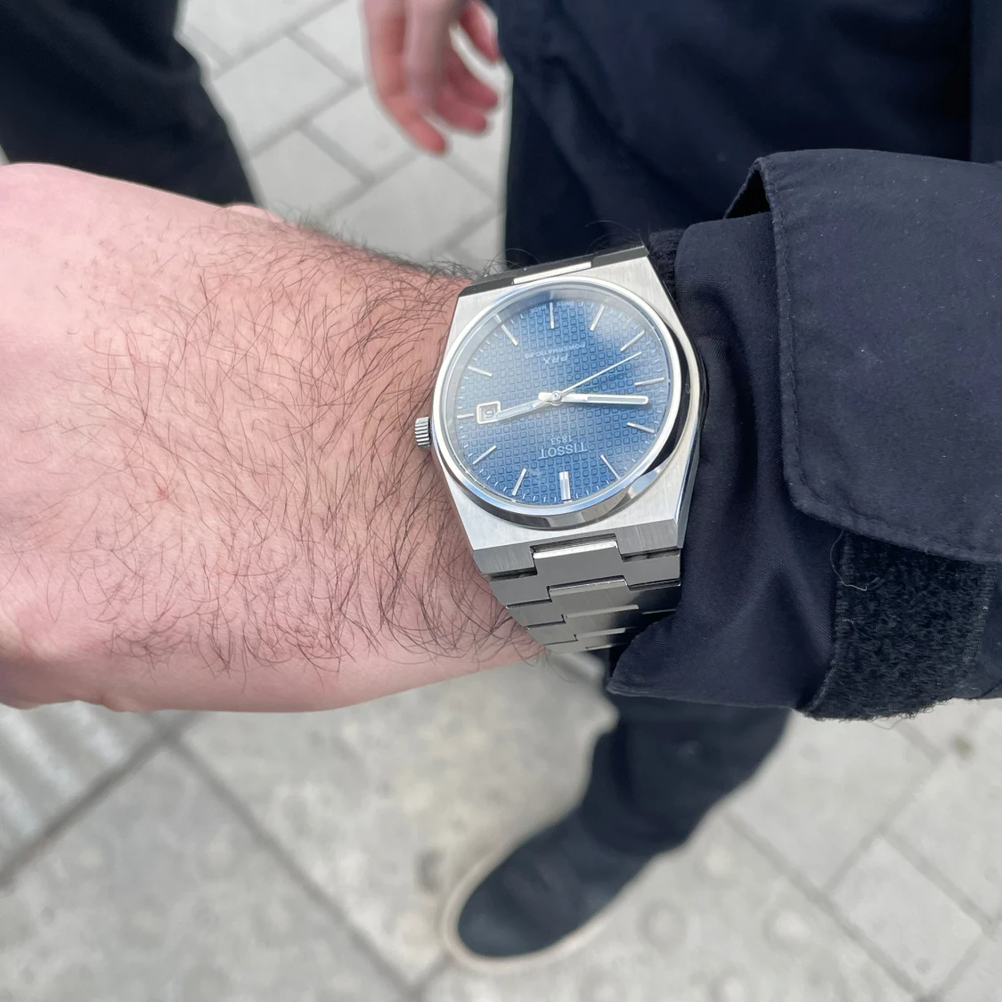 Silverfärgad klocka med blå urtavla från Tissot