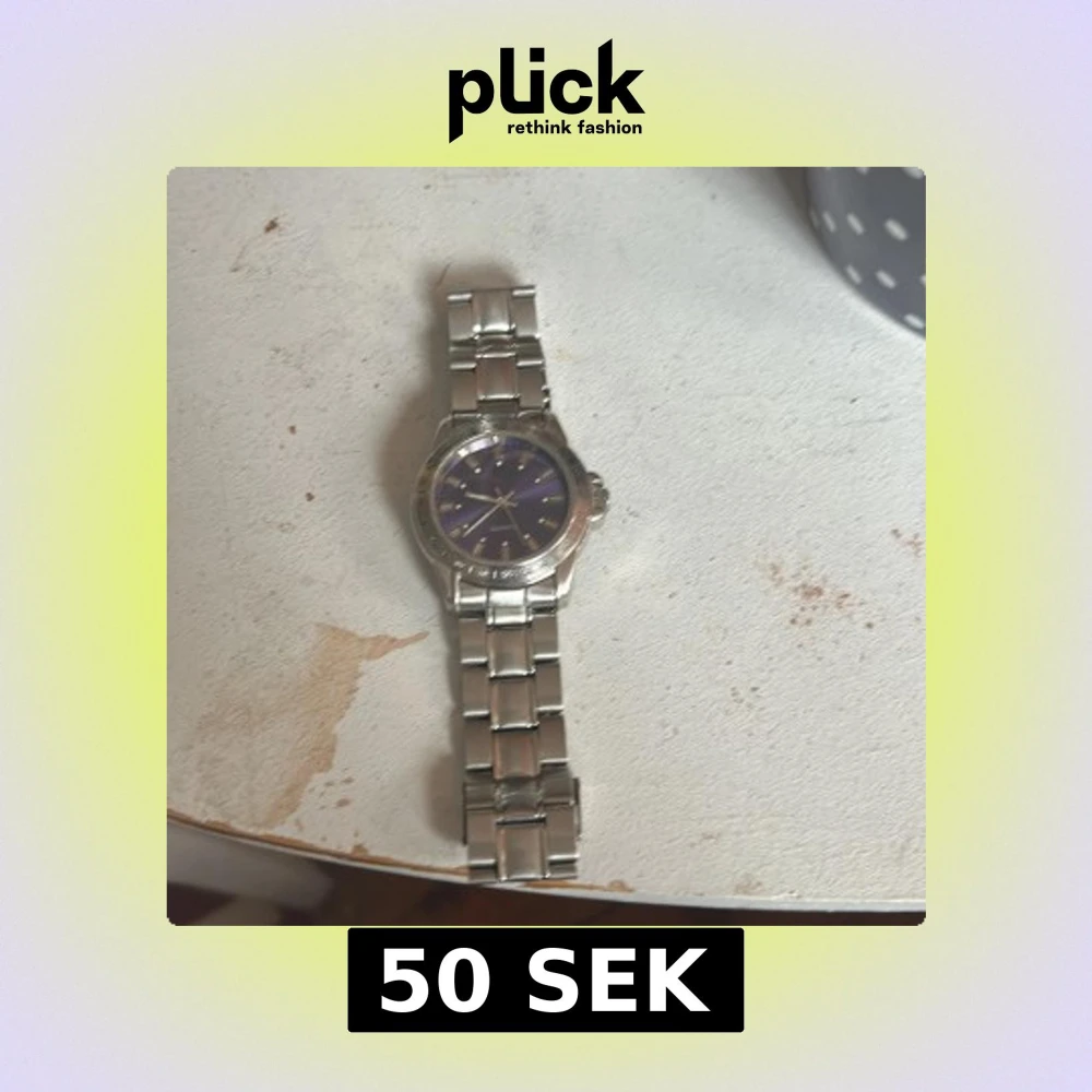 Stilren klocka från Quartz med metallarmband i silver och en snygg lila urtavla. Klockan har klassisk rund form, markerade index och detaljerad boett. Perfekt accessoar för dig som vill sticka ut med en cool färg på handleden.