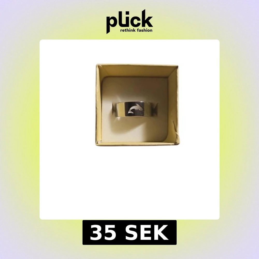Unik silverfärgad ring med ett utskuret delfinmotiv. Ringen har en modern design. Perfekt för att lägga till en touch av havsinspiration till din stil. Storlek 18.1 mm och i Rostfritt stål.
