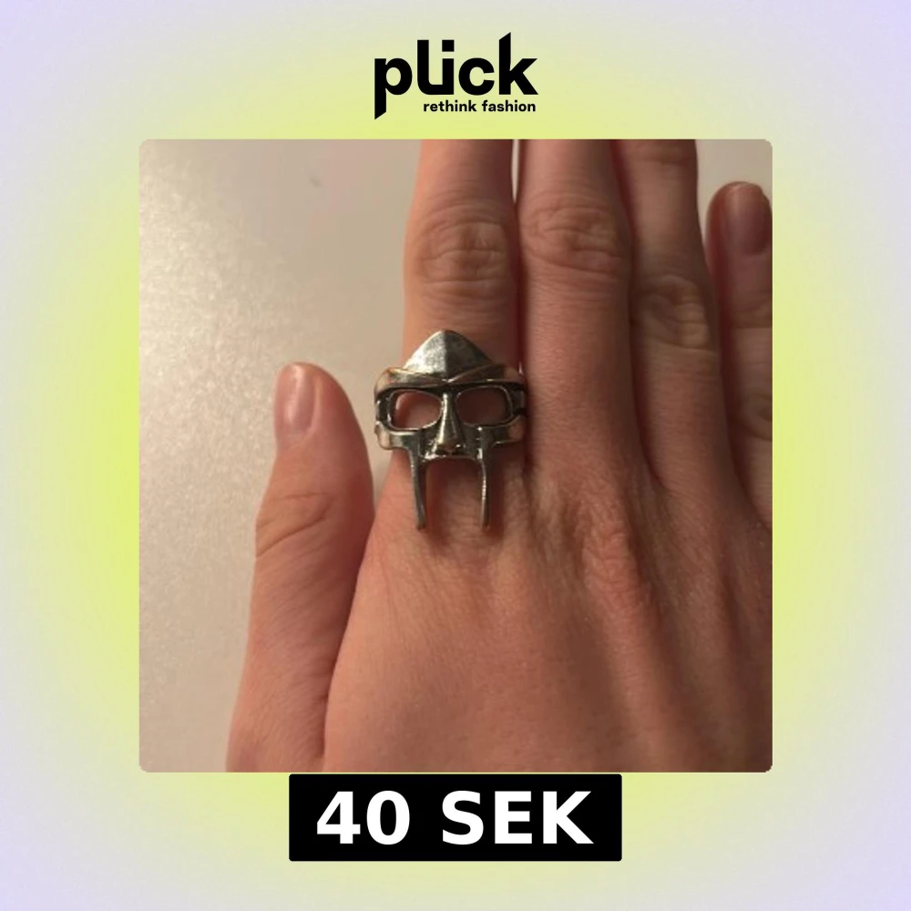 Unik ring i silverfärgad metall formad som en mask, inspirerad av klassiska hjälmar. Ringen har detaljerade utskärningar för ögon och näsa, vilket ger en cool och edgy vibe. Perfekt accessoar för dig som vill sticka ut och addera karaktär till din stil. STOR I STORLEKEN