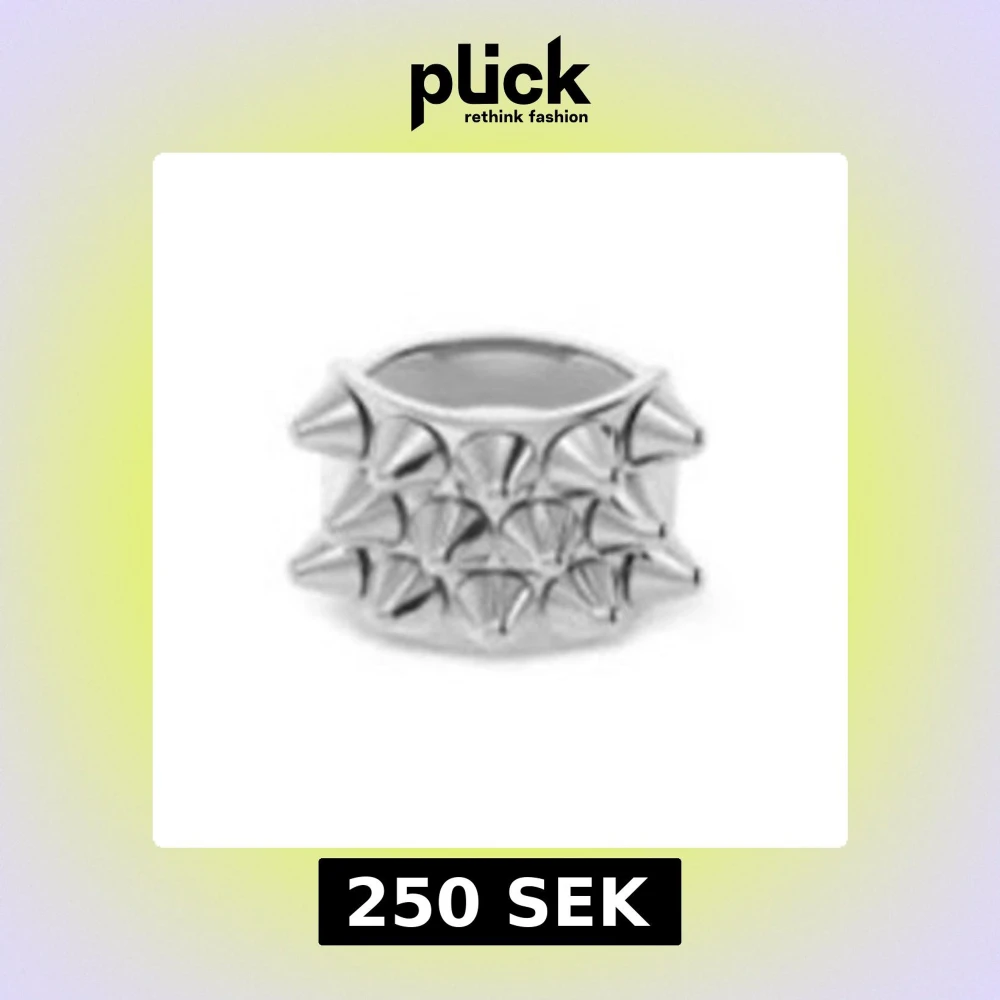 Cool och edgy ring i silverfärgad metall med flera spetsiga nitar runt hela ringen. Perfekt accessoar för dig som vill sticka ut och ge din stil en tuffare touch. Storlek: 17.5