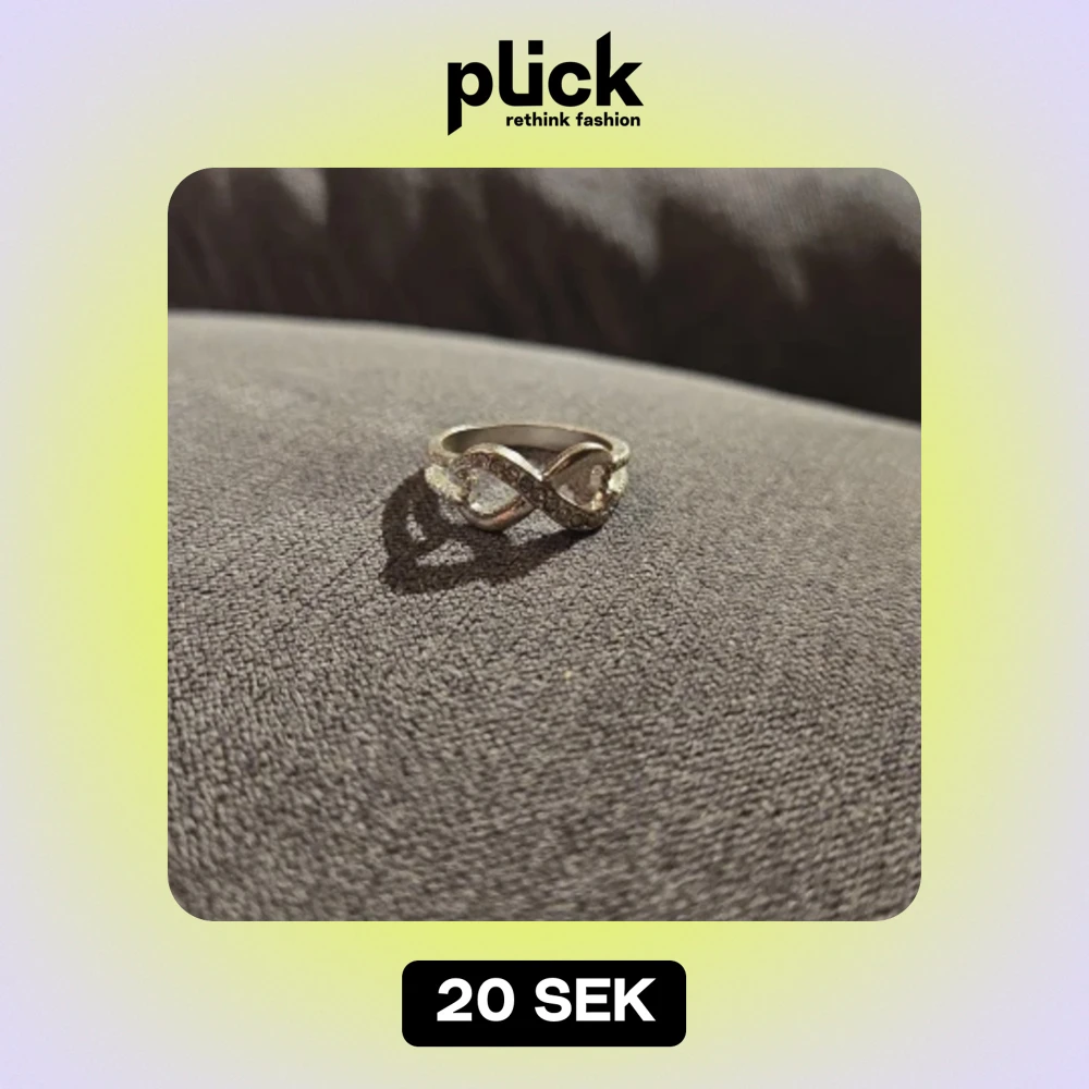 Säljer en elegant silverfärgad ring med en vacker oändlighetssymbol. Ringen har en glittrig yta som fångar ljuset perfekt. Perfekt accessoar för både vardag och fest! ✨