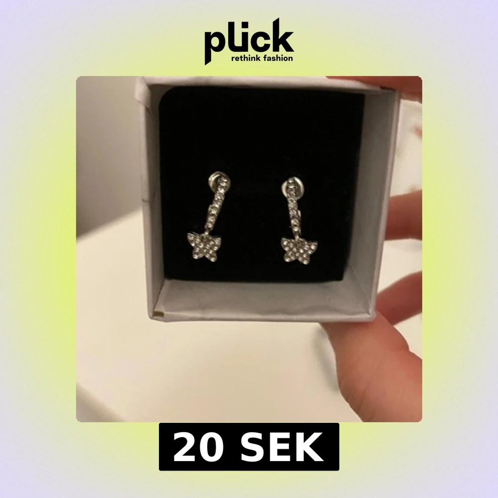 Fick dessa som födelsedagspresent, men har aldrig använt, inte ens testat. Helt nyskick alltså. Eleganta silverfärgade örhängen med gnistrande stenar. De har en hängande design med en liten fjärilsformad detalj längst ner. Perfekta för att ge en glittrig touch till din outfit. Lådan medföljes :)