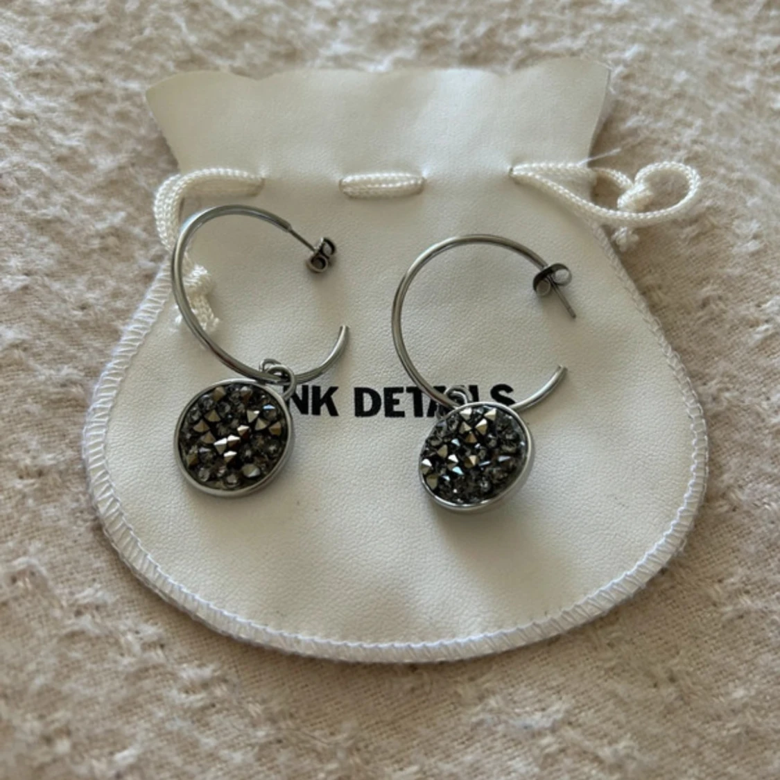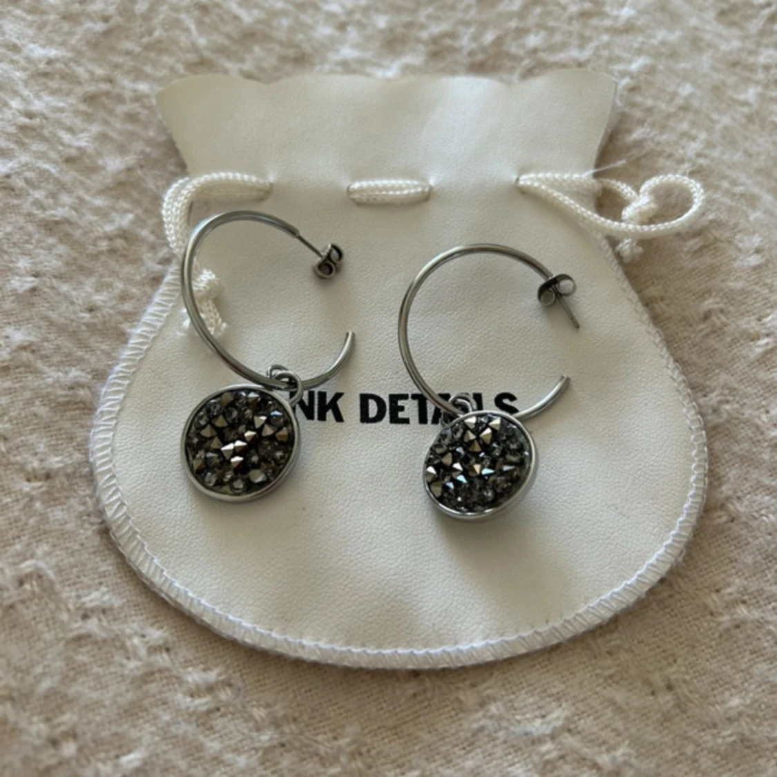 Silverfärgade örhängen med glittriga stenar från Pink Details