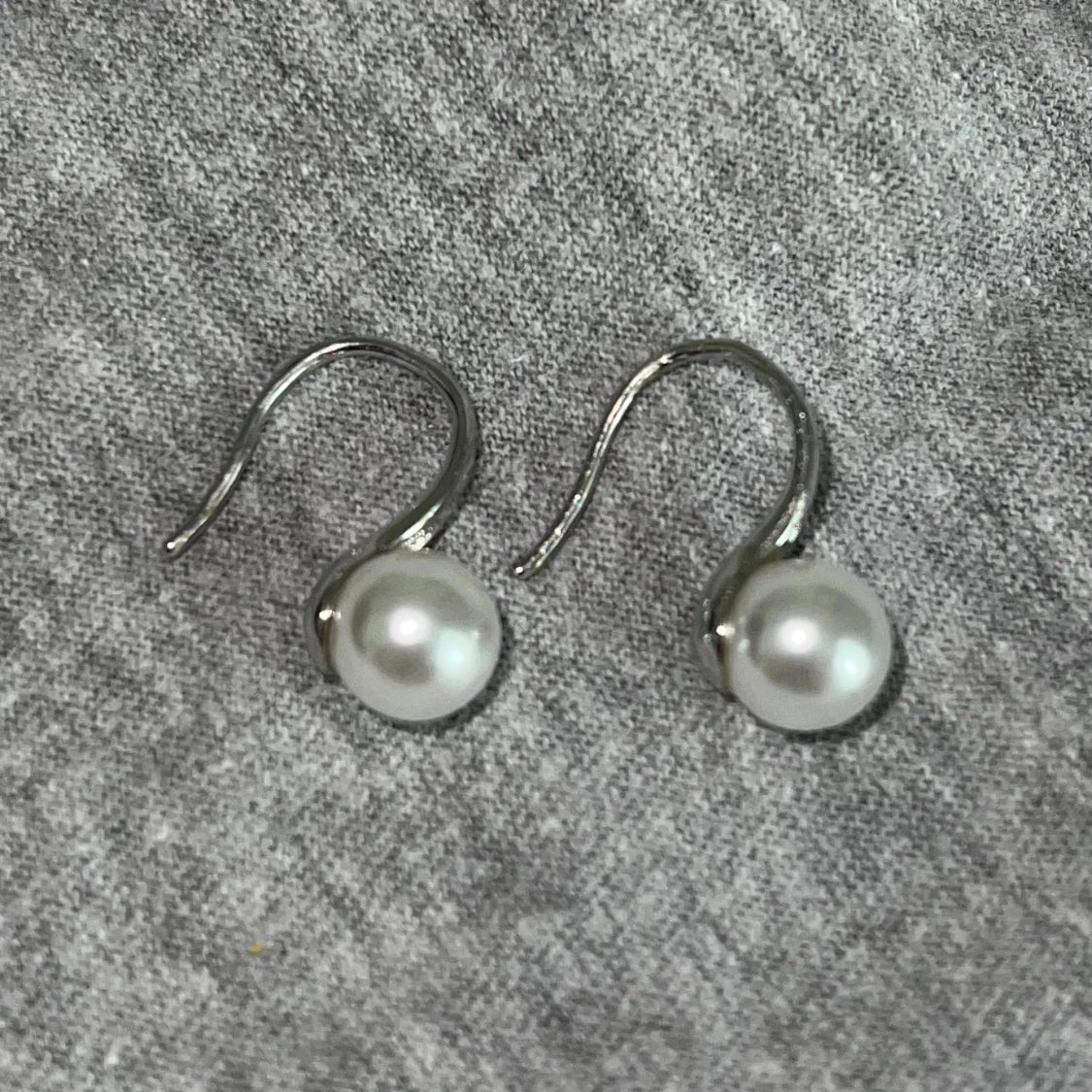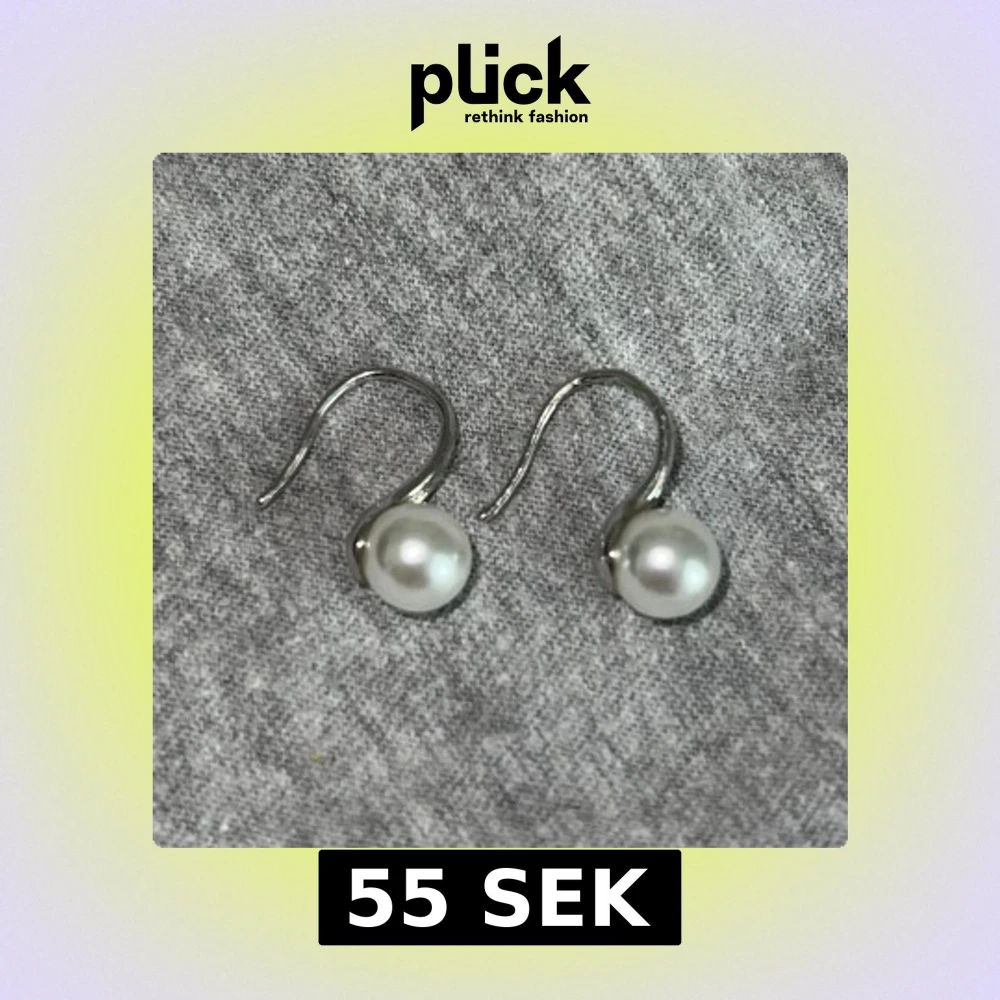 Säljer ett par stilrena örhängen i silverfärg med vita pärlor. Vet tyvärr inte vad det är för material, men de är i fint skick.