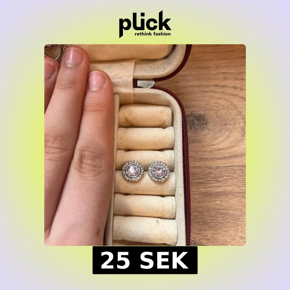 Eleganta silverfärgade örhängen med gnistrande stenar i mitten, omgivna av en rad mindre stenar. Perfekta för att ge en touch av glamour till din look.