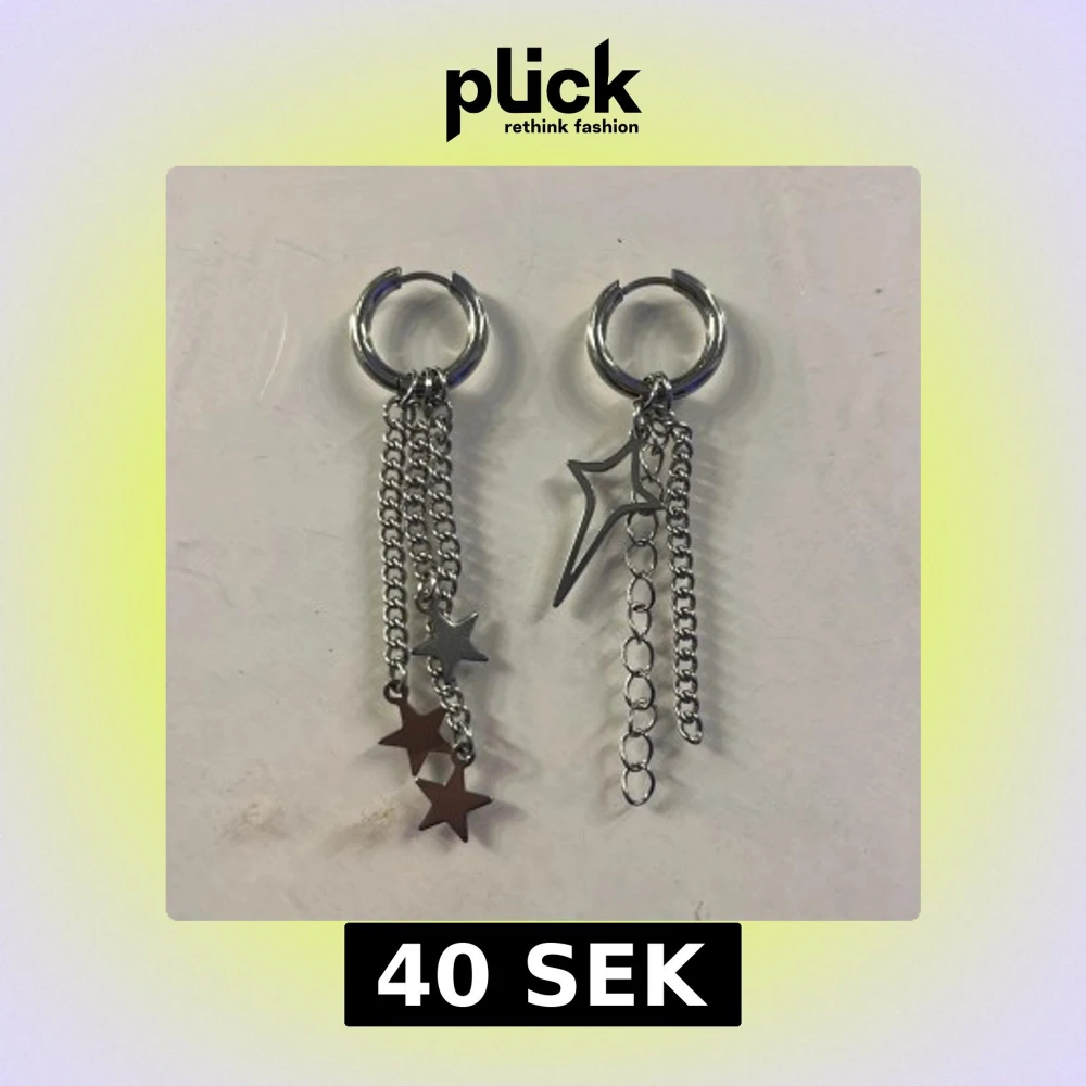 Örhängen i silverfärg med hängande kedjor och stjärndetaljer. Ena örhänget har tre små stjärnor och det andra har en större stjärna och kedjor i olika längder. Perfekt för dig som gillar unika accessoarer.
