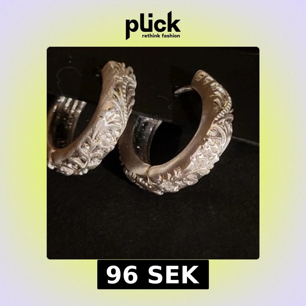 Säljer ett par snygga silverfärgade örhängen från Pilgrim med detaljerat mönster och bred båge. Tillverkade av minst 75% återvunnet material. Perfekta för att lyfta din stil.