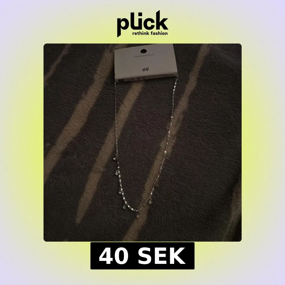Stilrent silverfärgat halsband från H&M med små glittriga hängen längs kedjan. Halsbandet är tillverkat av 79% återvunnet mässing och har en tunn, elegant kedja som ger en modern vibe.