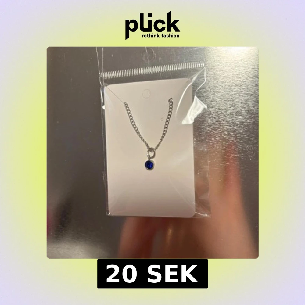 Elegant silverfärgat halsband med en vacker blå sten som hänge. Perfekt för att lägga till en touch av färg och stil till din outfit. Kedjan är tunn och smidig, vilket gör den bekväm att bära. (Billigt material)