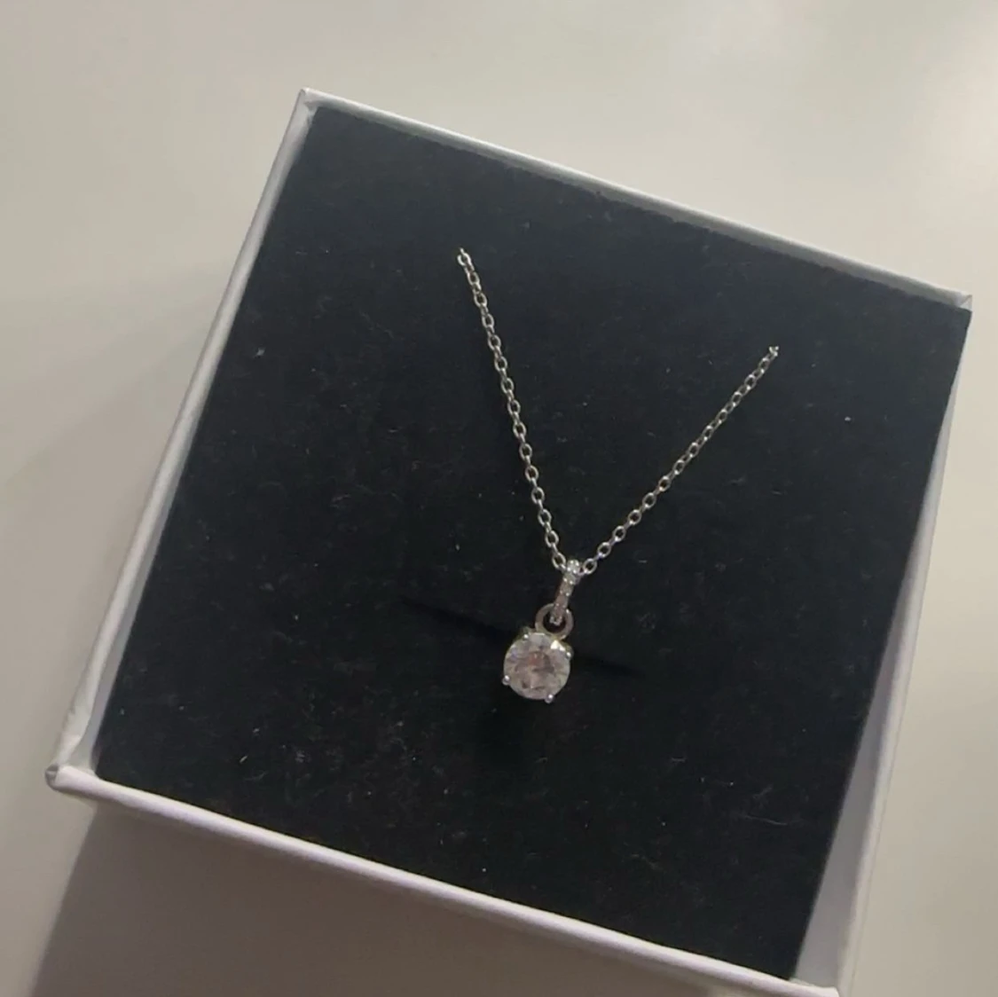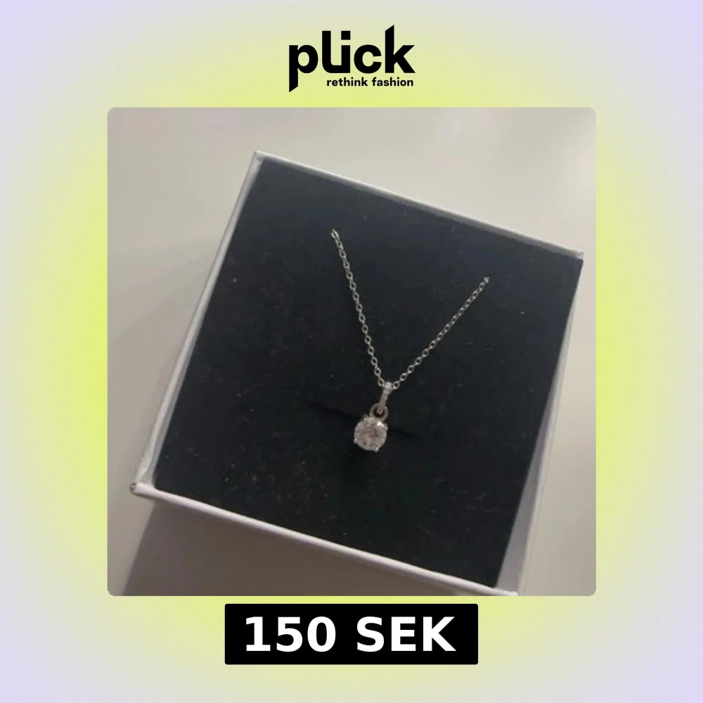 Säljer ett stilrent halsband i silverfärg med en glittrig, rund sten som hänge. Perfekt för dig som gillar enkla men eleganta smycken. Kedjan är tunn och smidig, och hänget ger en fin touch till din outfit.