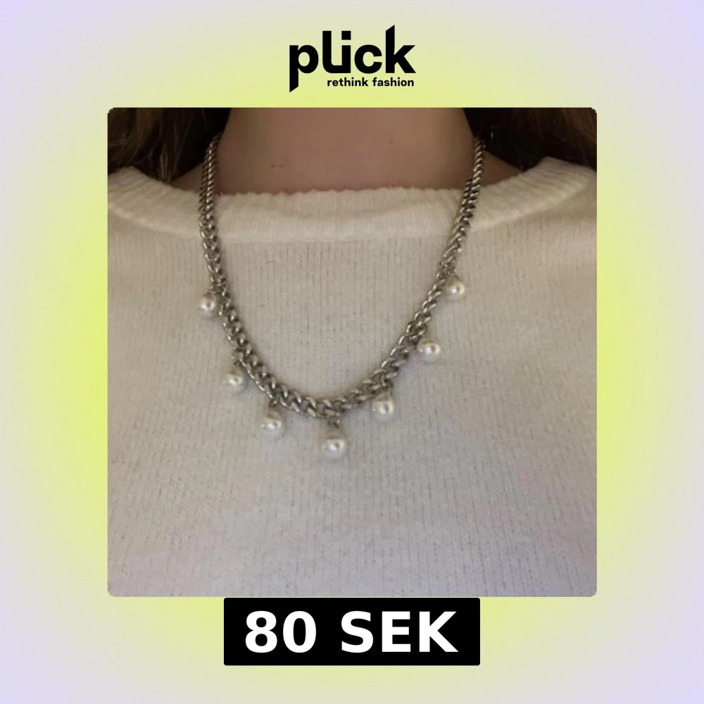 Snyggt halsband i silverfärgad kedja med hängande vita pärlor. Kedjan är lite chunky och pärlorna ger en elegant touch. Perfekt accessoar för att lyfta din outfit. Handgjort
