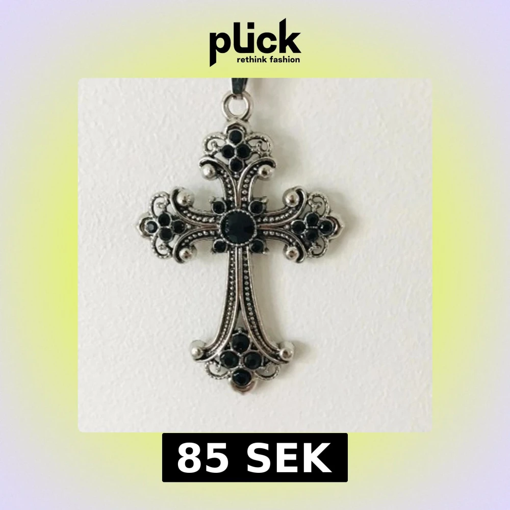 Elegant korshalsband i silverfärg med detaljerade svarta stenar. Korset har en vacker design med små runda stenar som ger en stilren och klassisk look. Perfekt för att ge en extra touch till din outfit.